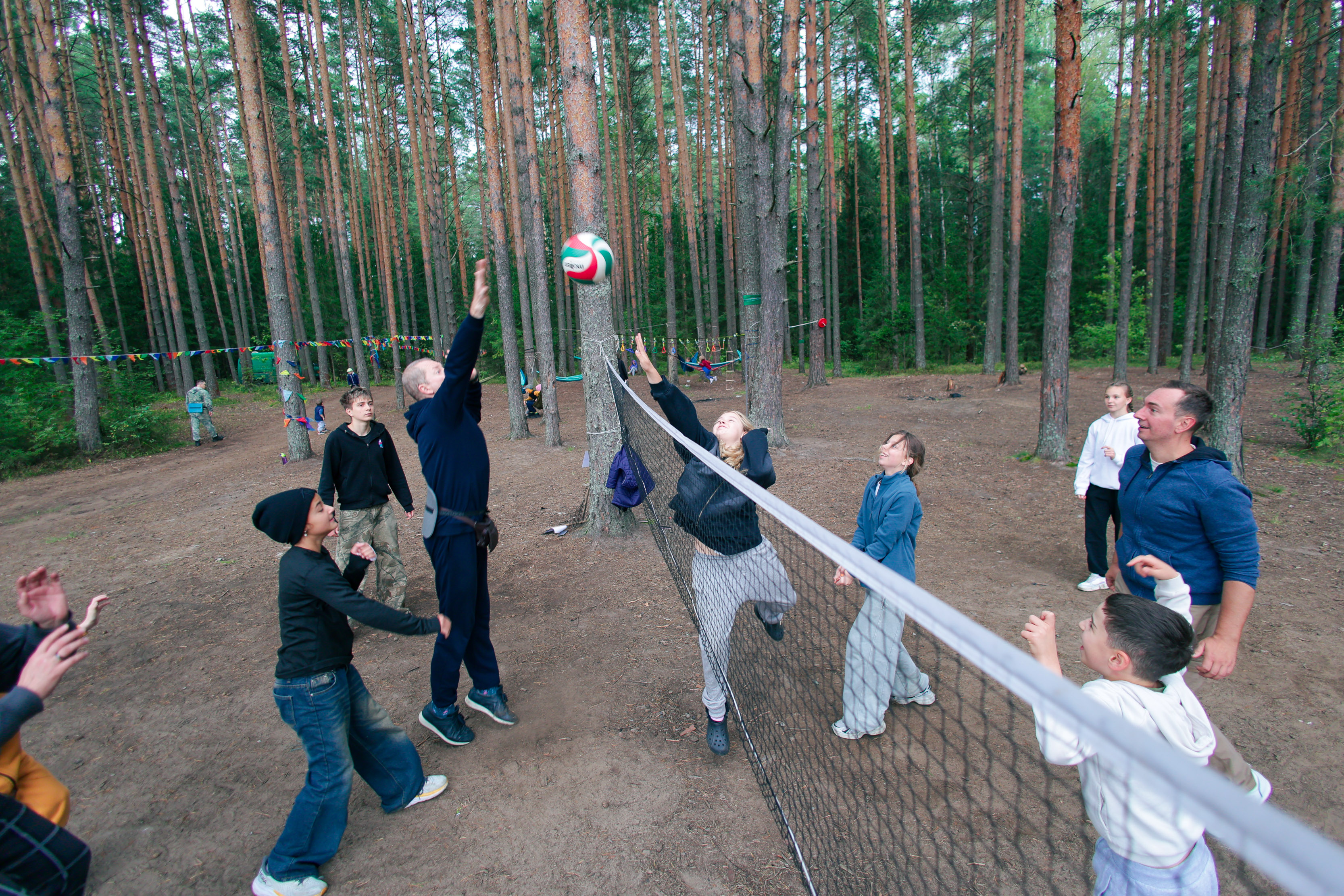 - Разнообразные активности: веселые эстафеты на суше и воде, катание на сап-досках, турнир по волейболу и петанку, семейная битва на тямбарах, настольные игры, мастер-класс или просто релакс в гамаках, а для желающих — тихая охота за грибами в сосновом лесу.